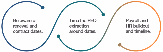 Benefits Coverage: Your employees' benefits are likely tied to the PEO’s group plans. Leaving the PEO may mean losing access to those plans. Be prepared to: