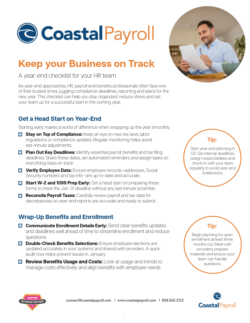 Download the full year-end checklist. Every company’s year-end looks a little different, but a clear plan makes it easier to stay compliant and step into 2026 with confidence. Our team has real people ready to help you customize a plan that best fits your business needs and goals.